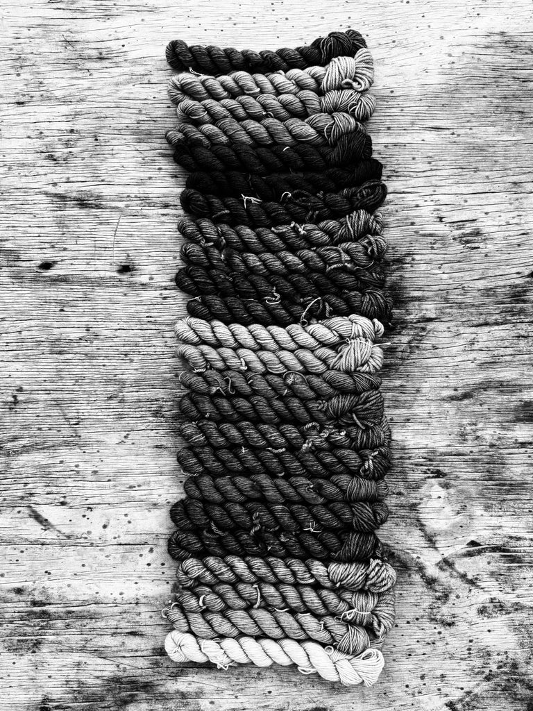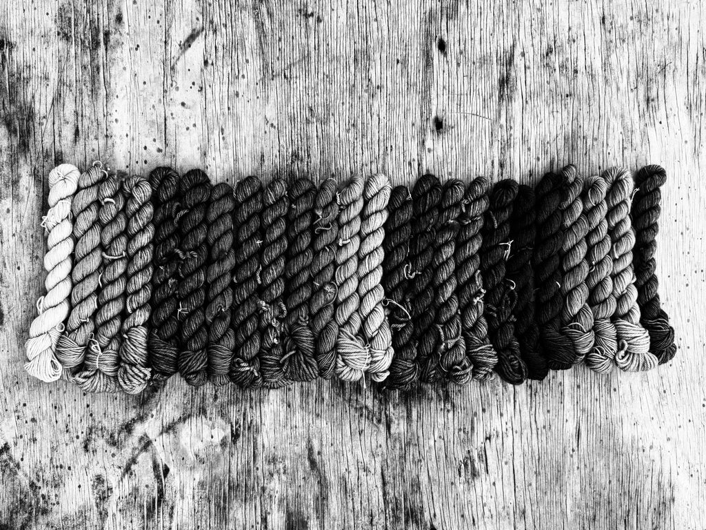 We dye with artistic intention and attitude. Repeating each colourway with 'match the photo' exact precision isn't in our wheelhouse. We do have detailed recipes but use measuring spoons instead of jewellers scales.